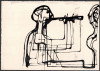 Rácz András (1926-2013): Furulyázó (cím nélkül). Zománcfesték, papír, jelzés nélkül. 21,5x30,5 cm